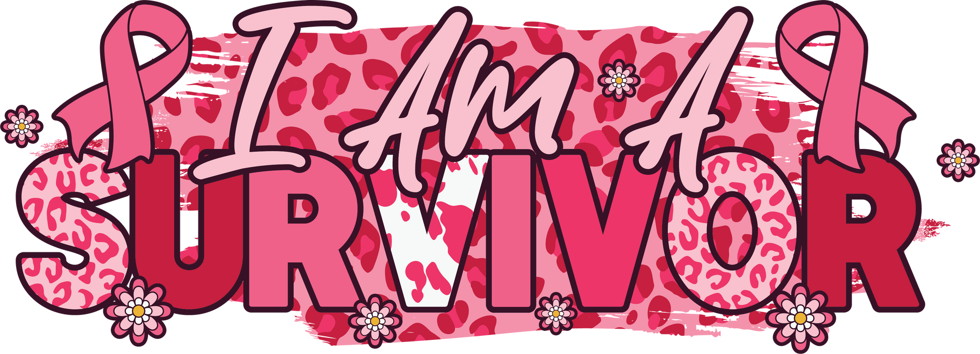 Honor strength and survival with this I Am a Survivor DTF Transfer (11x4 inches) 🎀🌸 Featuring bold pink lettering with leopard-print accents, breast cancer ribbons, and floral details, this design is perfect for celebrating survivors and spreading awareness.