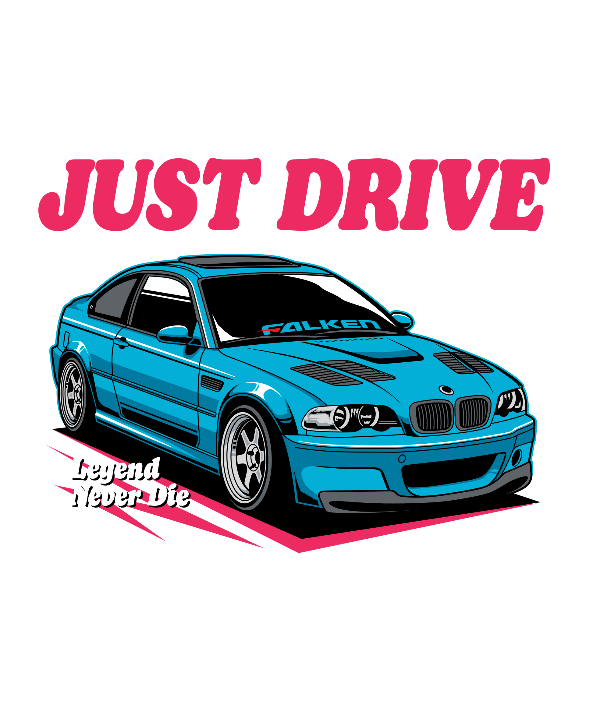 Bring your designs to life with our “Just Drive – Legend Never Die” Car DTF Transfer.