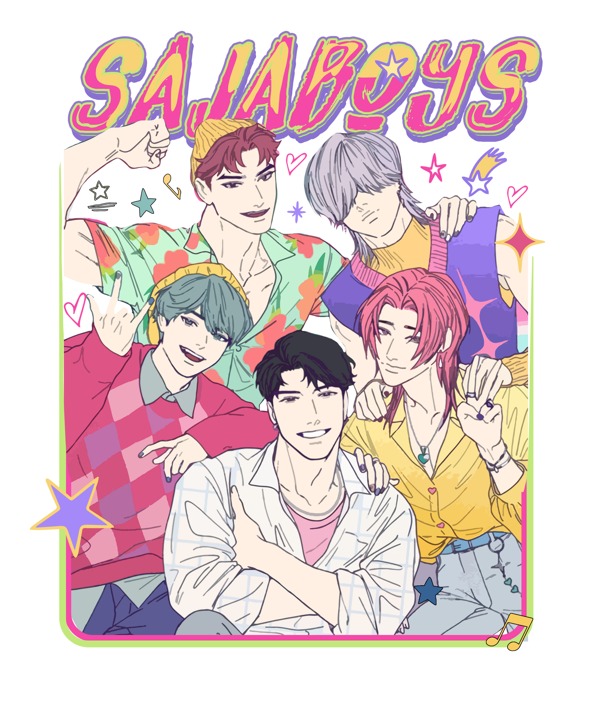 Turn any blank tee, hoodie, or tote into a K-Pop fashion statement with this SAJA BOYS DTF transfer! 🌟 Featuring a colorful boy band illustration with bold retro vibes, this high-quality design is perfect for fans, streetwear lovers, and custom apparel creators.